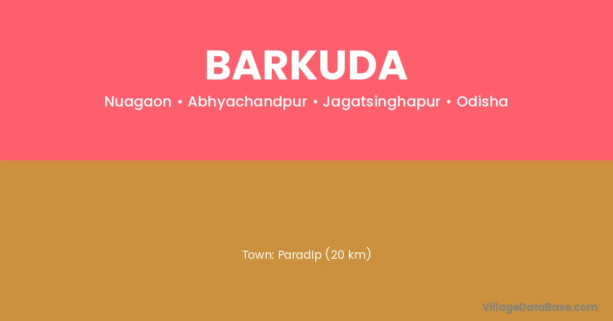 Paradip (20 km) is the nearest town to Barkuda village for major economic activities and is located approximately 20 km away.