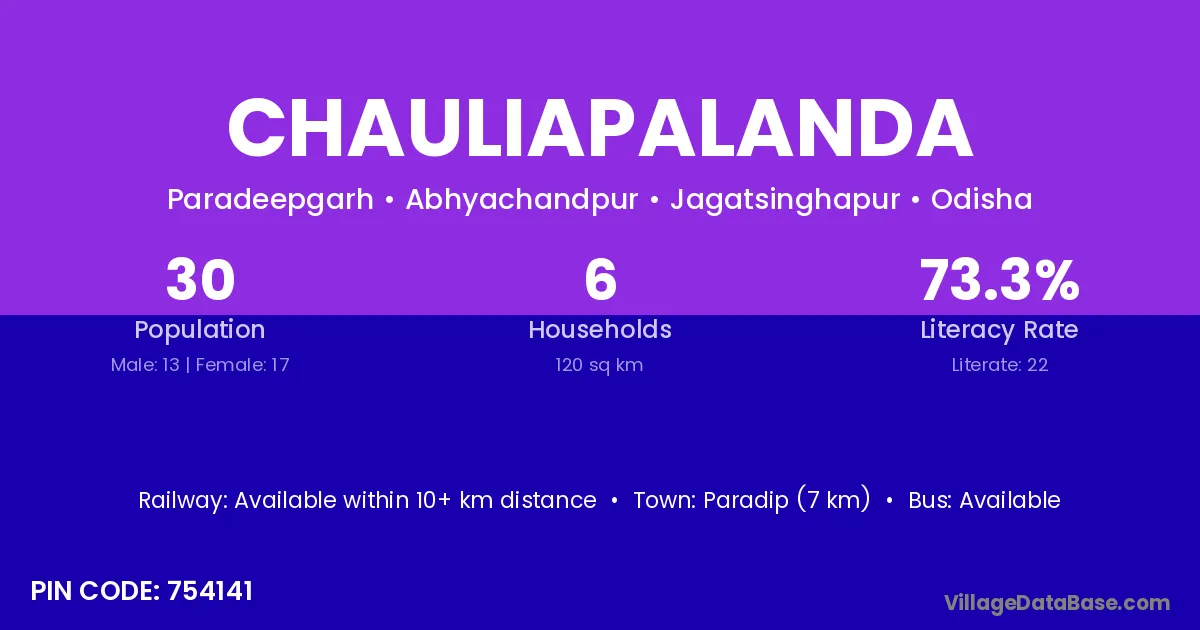 Paradip (7 km) is the nearest town to Chauliapalanda village for major economic activities and is located approximately 7 km away.