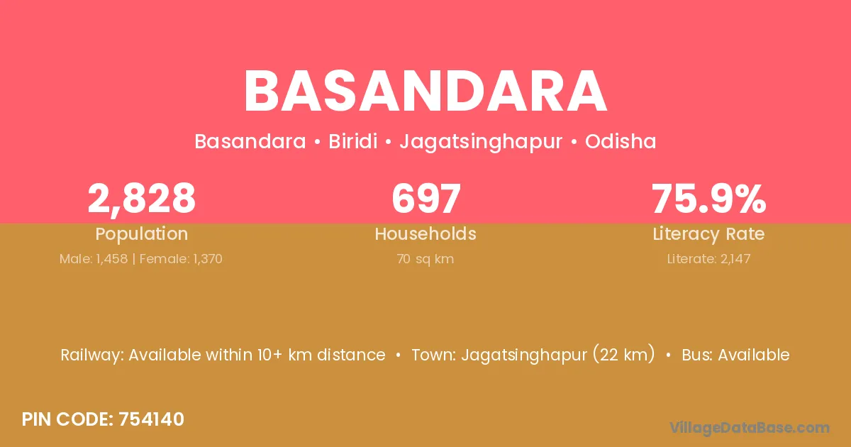 Jagatsinghapur (22 km) is the nearest town to Basandara village for major economic activities and is located approximately 22 km away.
