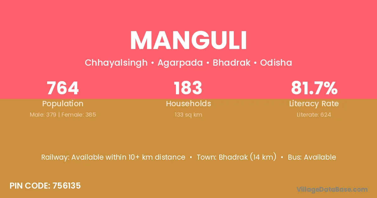 Jagatsinghapur (22 km) is the nearest town to Manguli village for major economic activities and is located approximately 22 km away.