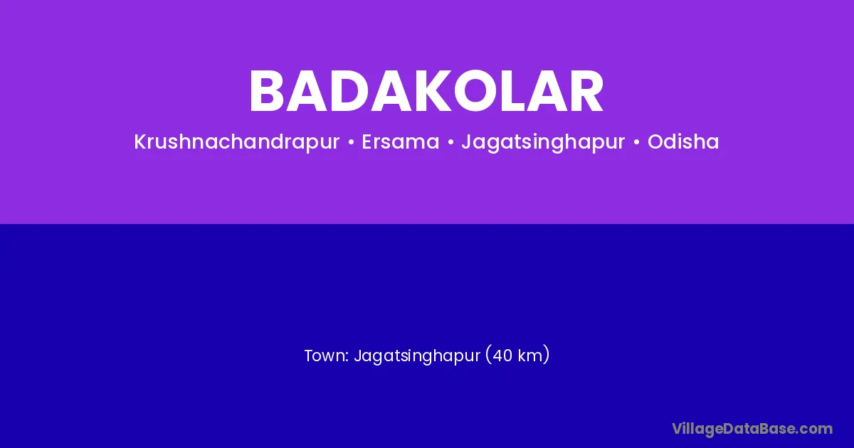 Jagatsinghapur (40 km) is the nearest town to Badakolar village for major economic activities and is located approximately 40 km away.