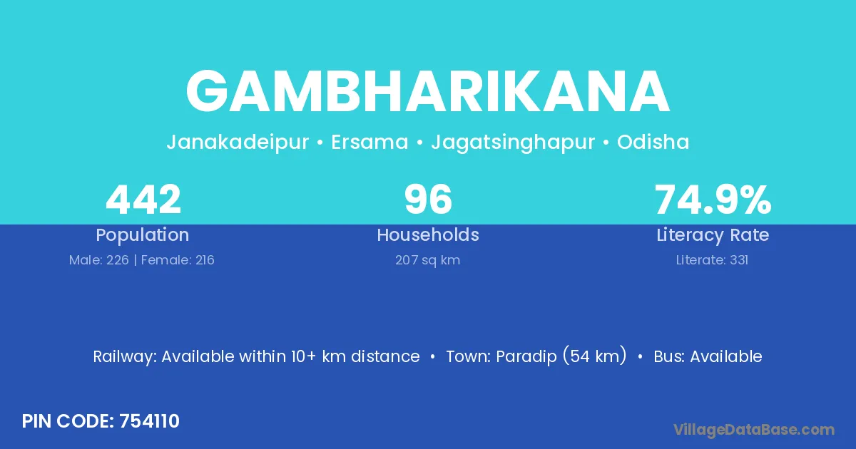 Gambharikana village is located in the Ersama Tehsil of the Jagatsinghapur district in Odisha .