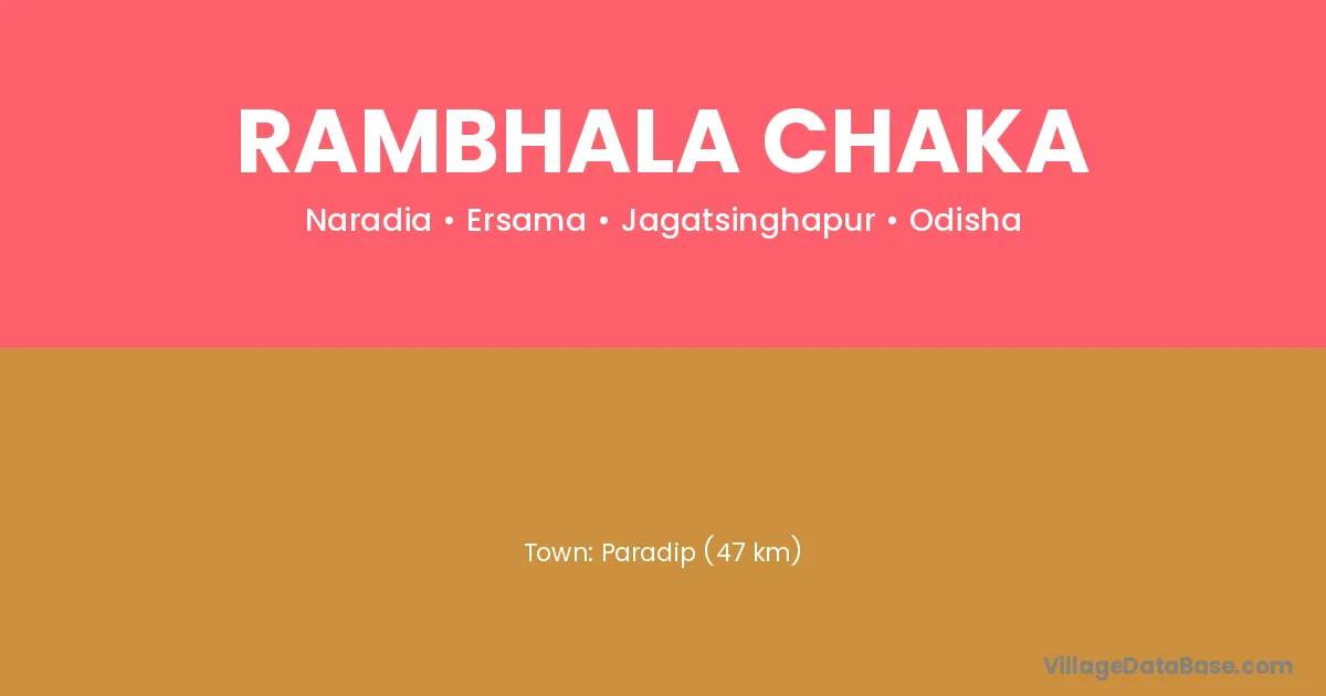 Paradip (47 km) is the nearest town to Rambhala Chaka village for major economic activities and is located approximately 47 km away.