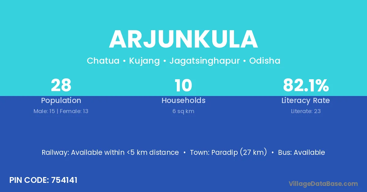 Paradip (27 km) is the nearest town to Arjunkula village for major economic activities and is located approximately 27 km away.