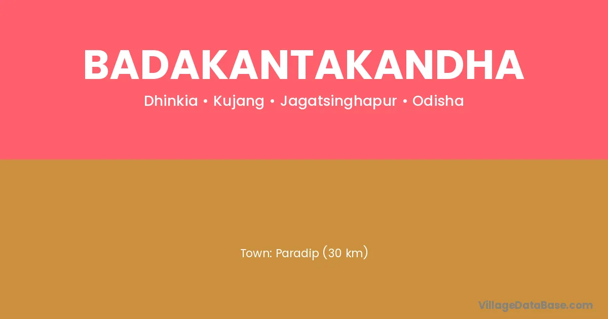 Paradip (30 km) is the nearest town to Badakantakandha village for major economic activities and is located approximately 30 km away.
