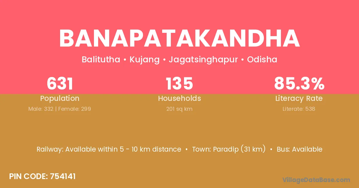 Paradip (31 km) is the nearest town to Banapatakandha village for major economic activities and is located approximately 31 km away.