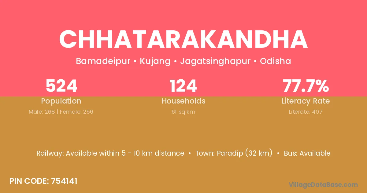 Paradip (32 km) is the nearest town to Chhatarakandha village for major economic activities and is located approximately 32 km away.