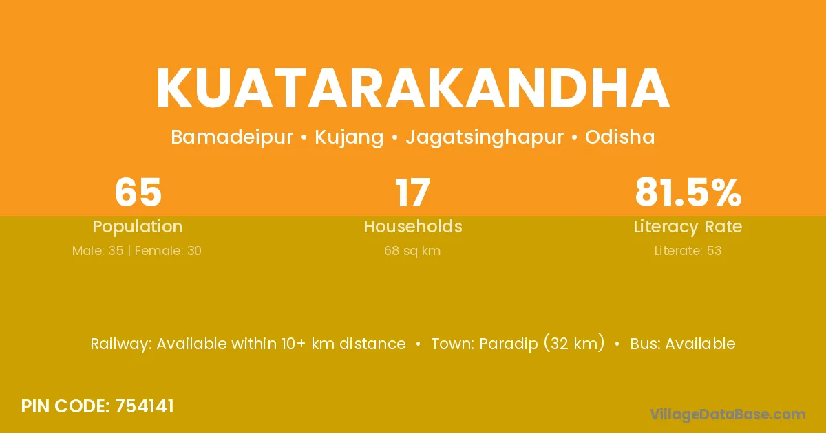 Paradip (32 km) is the nearest town to Kuatarakandha village for major economic activities and is located approximately 32 km away.