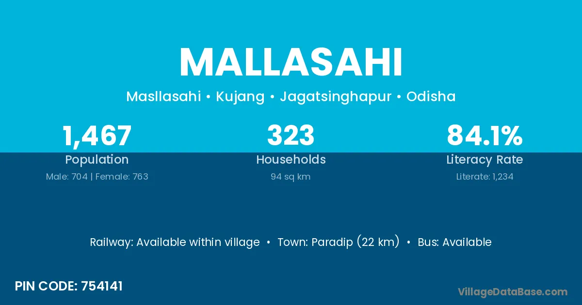 Paradip (22 km) is the nearest town to Mallasahi village for major economic activities and is located approximately 22 km away.