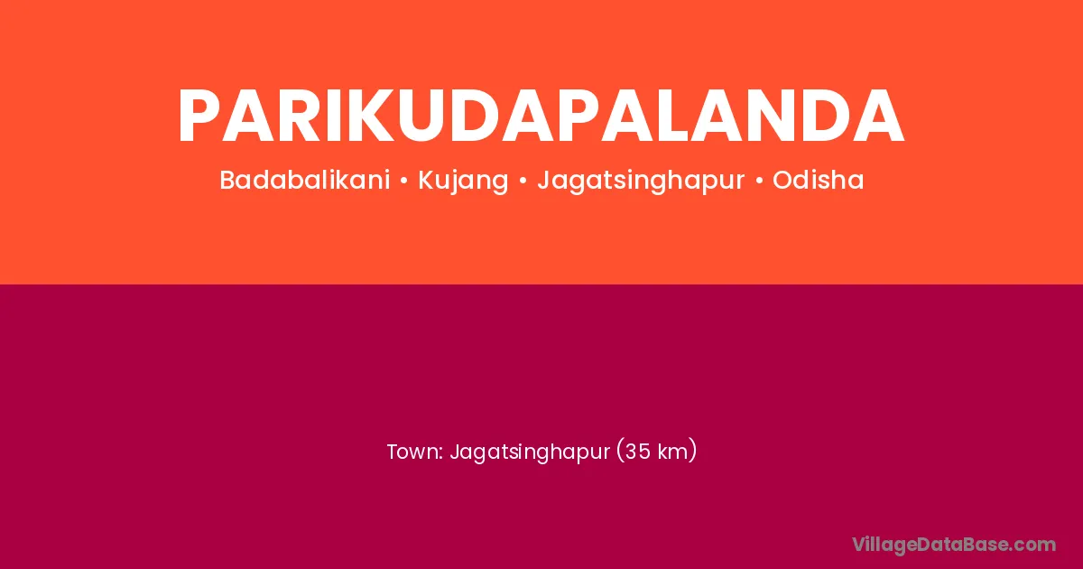 Jagatsinghapur (35 km) is the nearest town to Parikudapalanda village for major economic activities and is located approximately 35 km away.