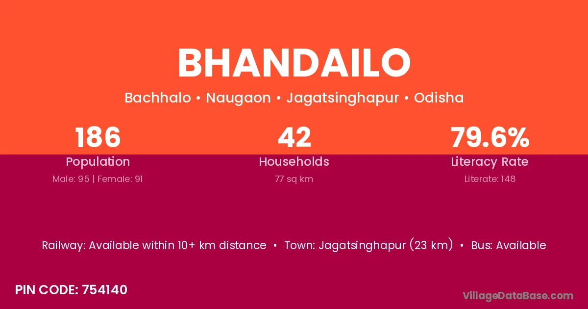 Jagatsinghapur (23 km) is the nearest town to Bhandailo village for major economic activities and is located approximately 23 km away.