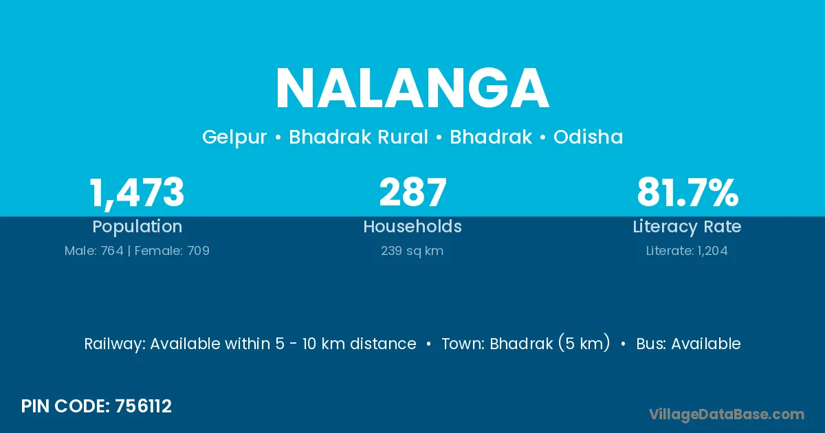 Jagatsinghapur (6 km) is the nearest town to Nalanga village for major economic activities and is located approximately 6 km away.