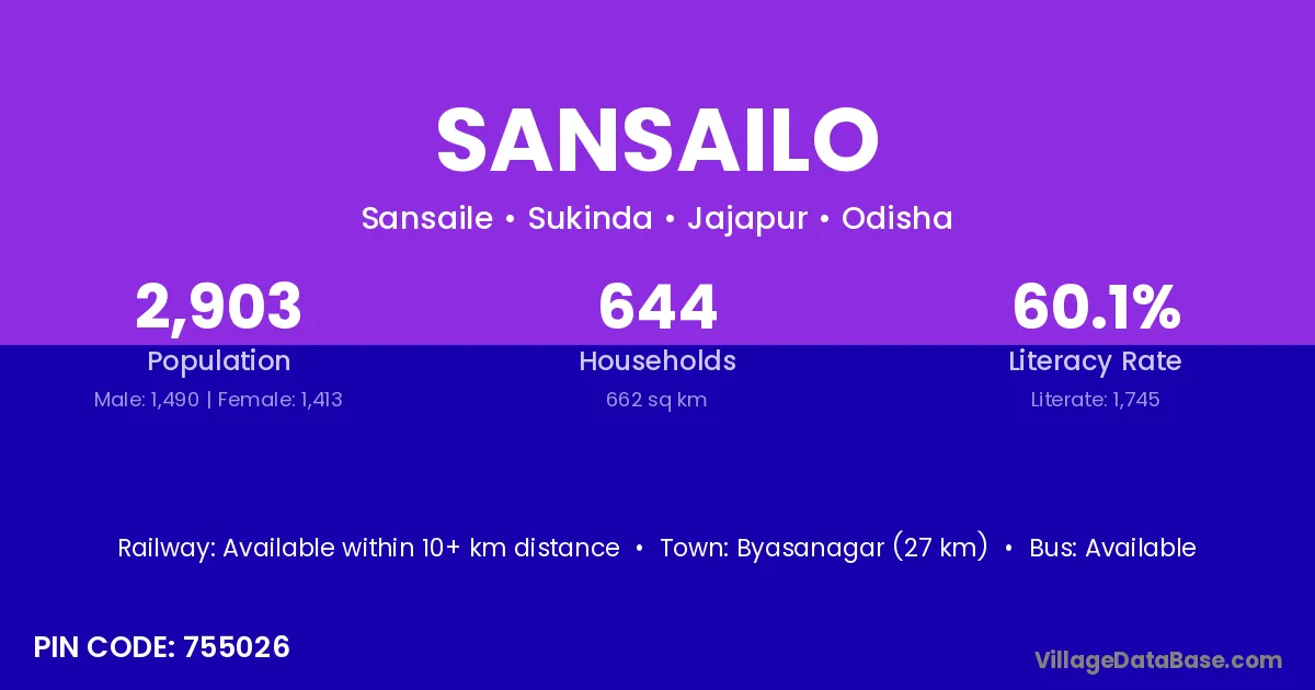 Jagatsinghapur (5 km) is the nearest town to Sansailo village for major economic activities and is located approximately 5 km away.