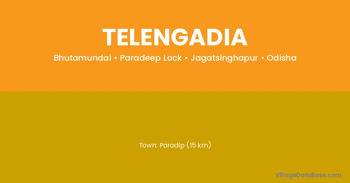 Paradip (15 km) is the nearest town to Telengadia village for major economic activities and is located approximately 15 km away.