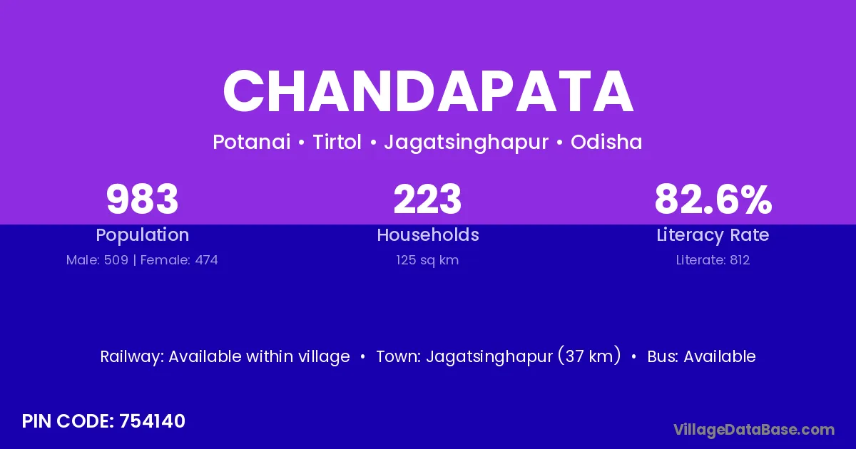 Chandapata village has a total population of 983 people, of which 509 are males and 474 are females.