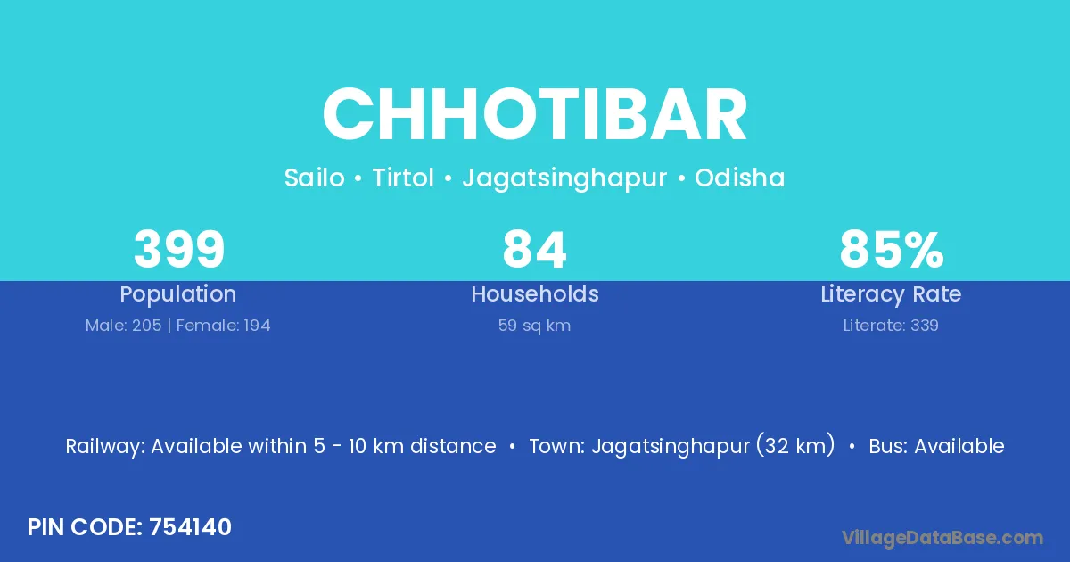 Jagatsinghapur (32 km) is the nearest town to Chhotibar village for major economic activities and is located approximately 32 km away.