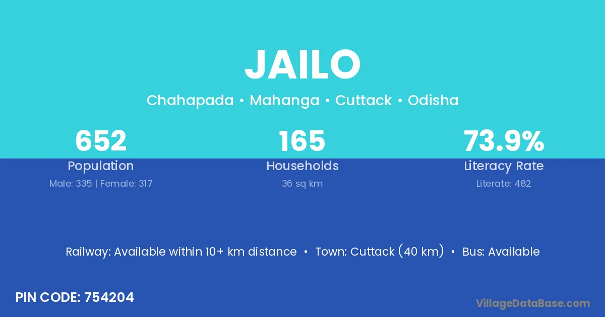 Jagatsinghapur (26 km) is the nearest town to Jailo village for major economic activities and is located approximately 26 km away.
