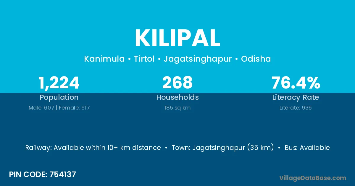 Jagatsinghapur (35 km) is the nearest town to Kilipal village for major economic activities and is located approximately 35 km away.