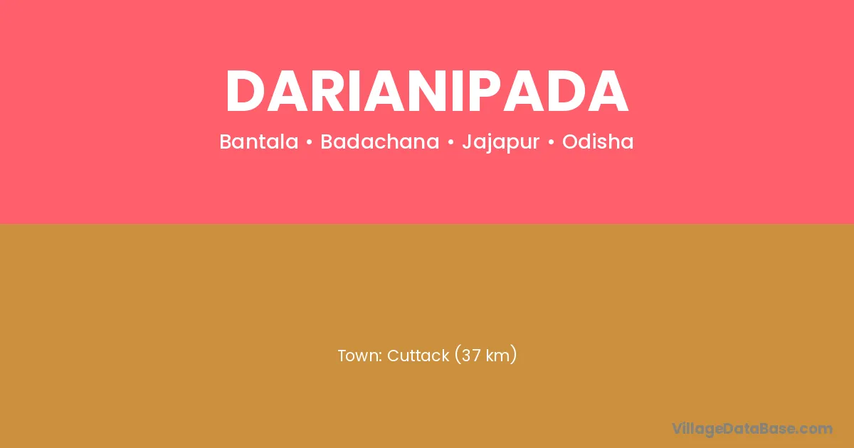 Darianipada village is located in the Badachana Tehsil of the Jajapur district in Odisha .