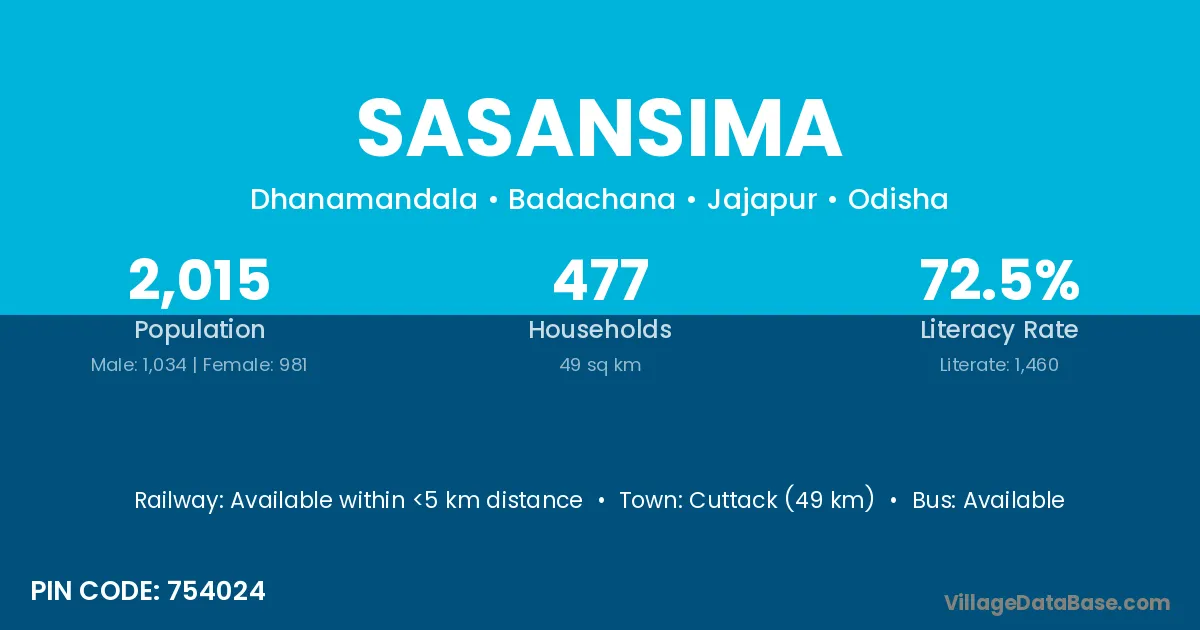 Sasansima village is located in the Badachana Tehsil of the Jajapur district in Odisha .