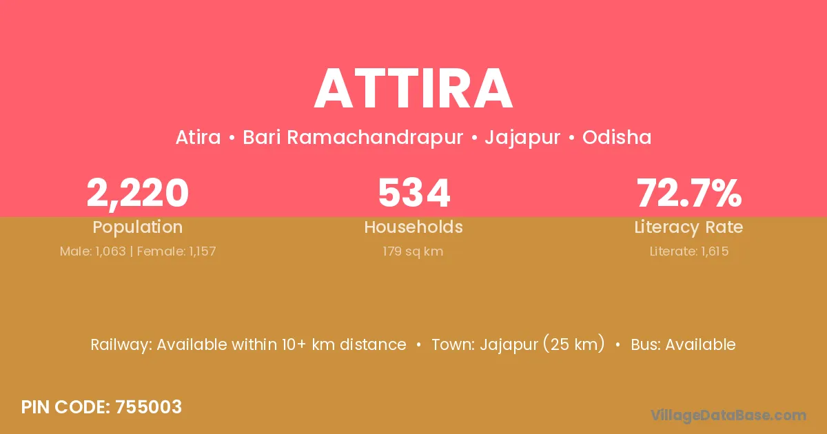 Jajapur (25 km) is the nearest town to Attira village for major economic activities and is located approximately 25 km away.