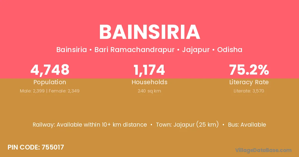 Bainsiria village is located in the Bari Ramachandrapur Tehsil of the Jajapur district in Odisha .