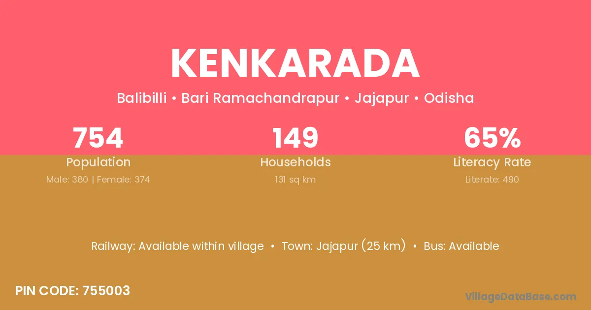 Kenkarada village has a total population of 754 people, of which 380 are males and 374 are females.