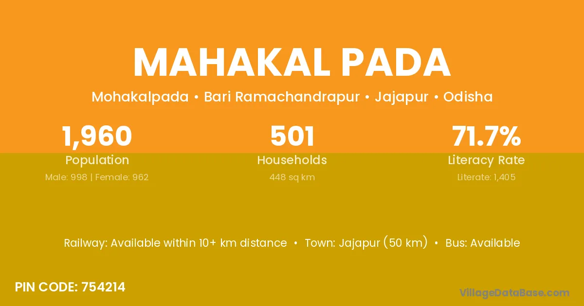 Jajapur (50 km) is the nearest town to Mahakal Pada village for major economic activities and is located approximately 50 km away.