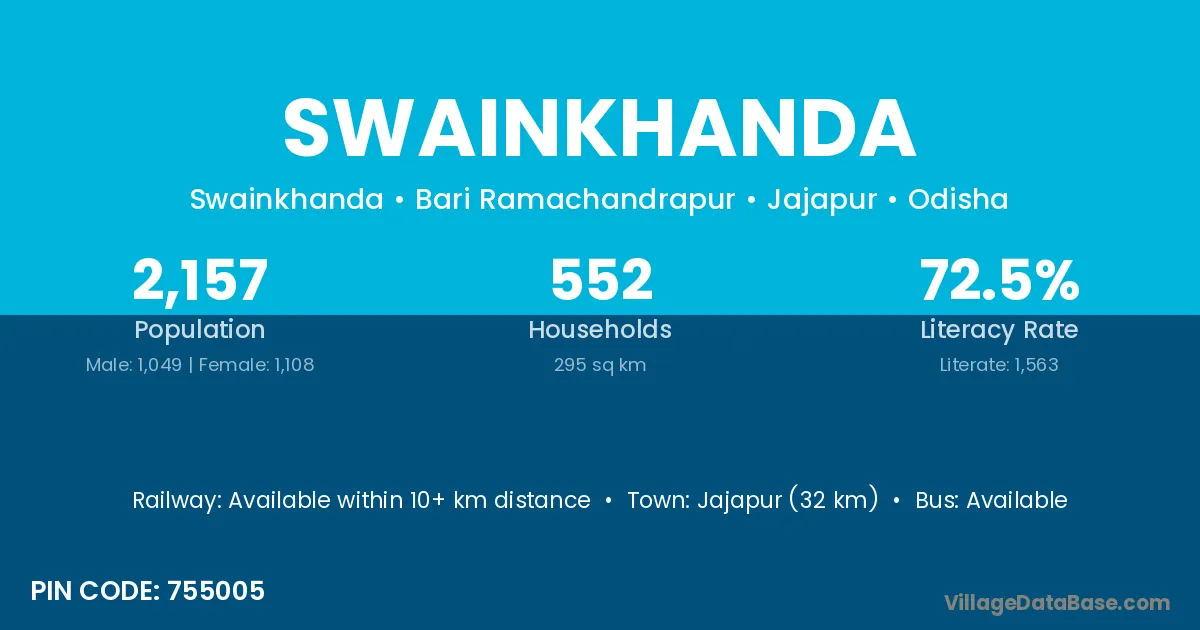 Jajapur (32 km) is the nearest town to Swainkhanda village for major economic activities and is located approximately 32 km away.