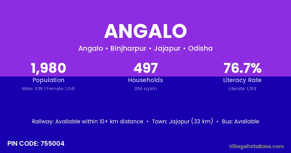 Jajapur (33 km) is the nearest town to Angalo village for major economic activities and is located approximately 33 km away.