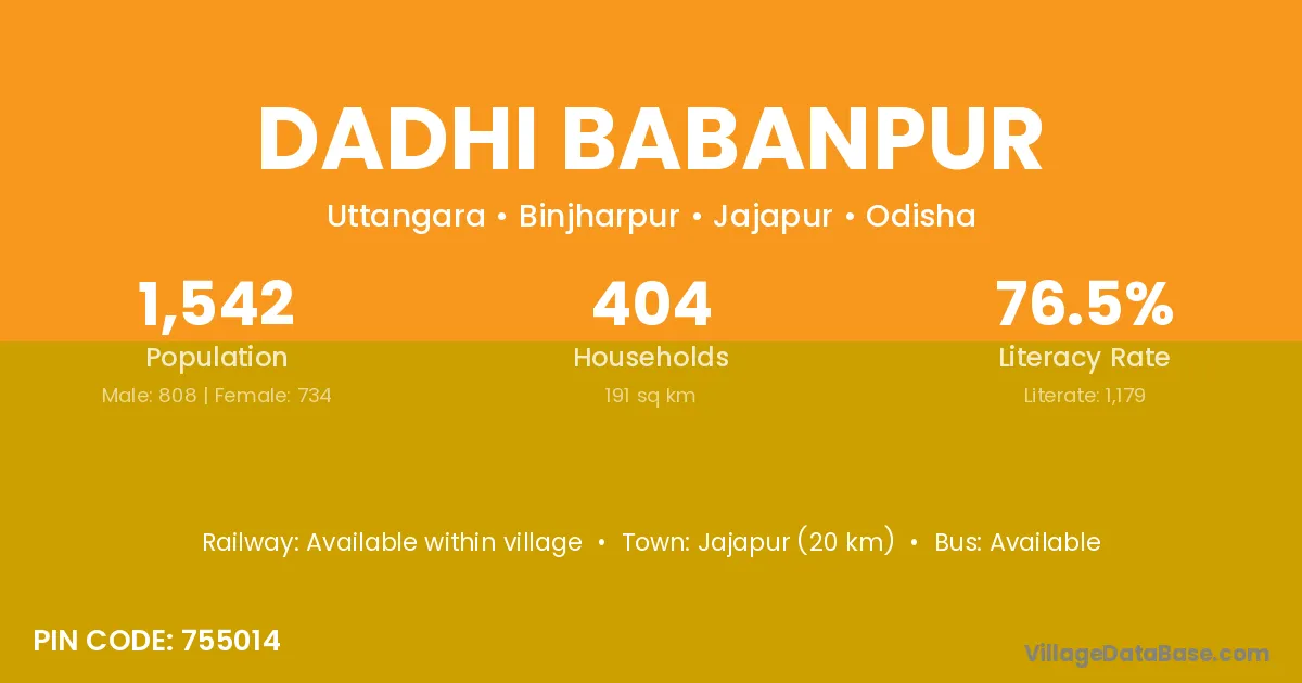 Jajapur (20 km) is the nearest town to Dadhi Babanpur village for major economic activities and is located approximately 20 km away.