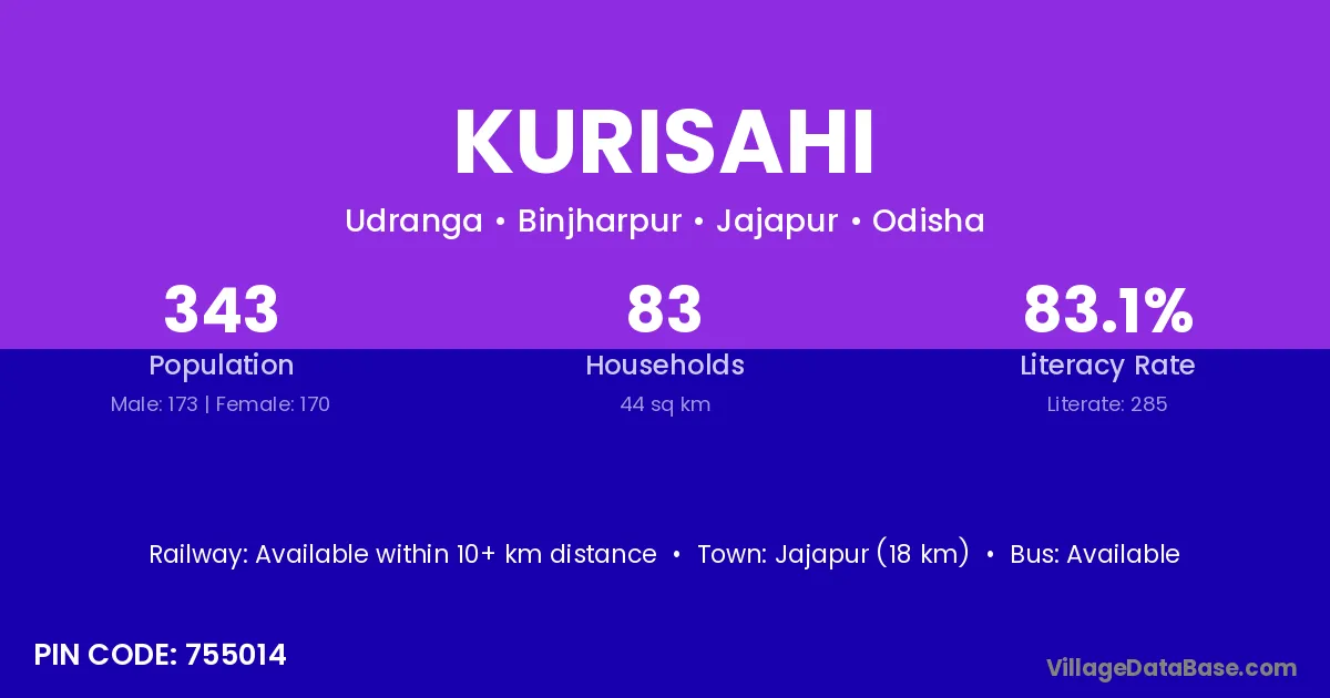 Jajapur (18 km) is the nearest town to Kurisahi village for major economic activities and is located approximately 18 km away.