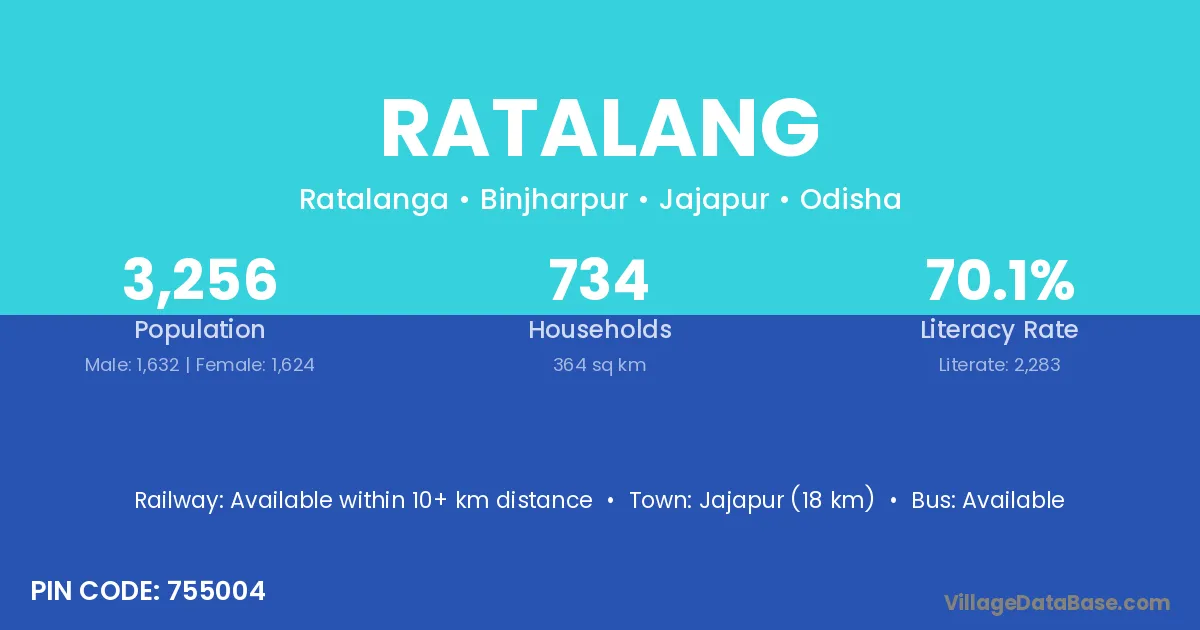 Jajapur (18 km) is the nearest town to Ratalang village for major economic activities and is located approximately 18 km away.