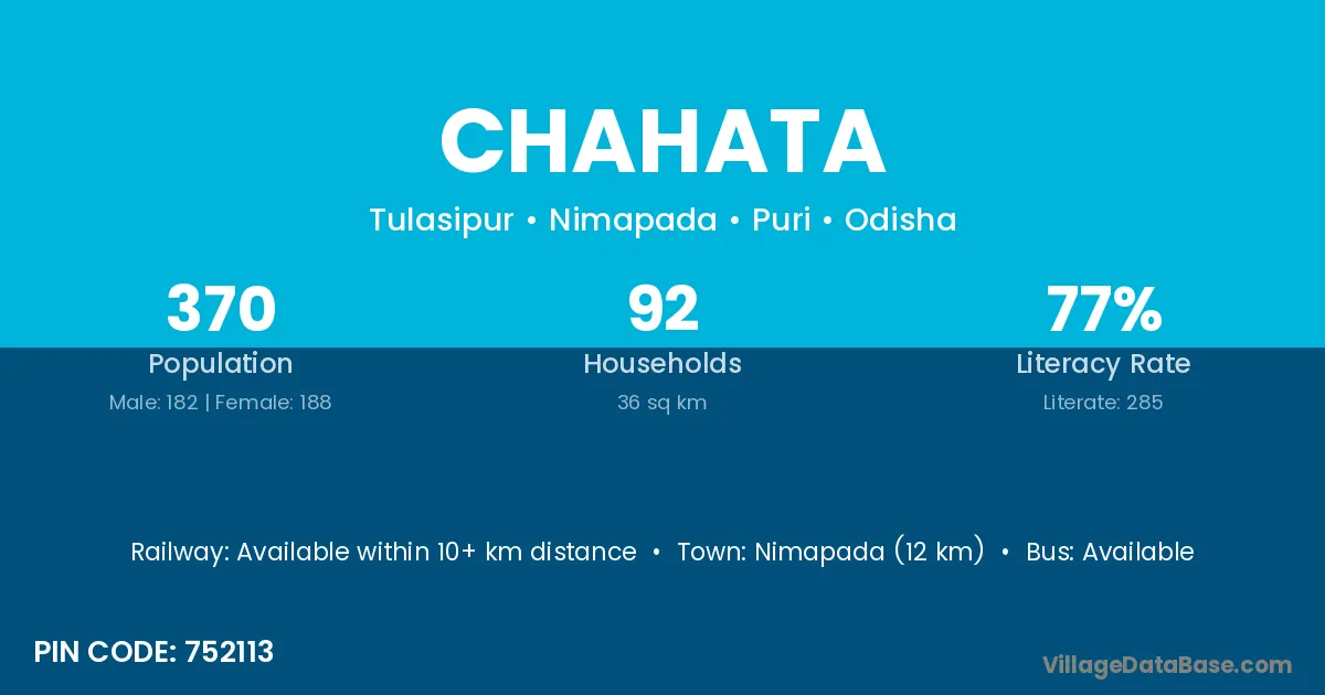 Jajapur (60 km) is the nearest town to Chahata village for major economic activities and is located approximately 60 km away.