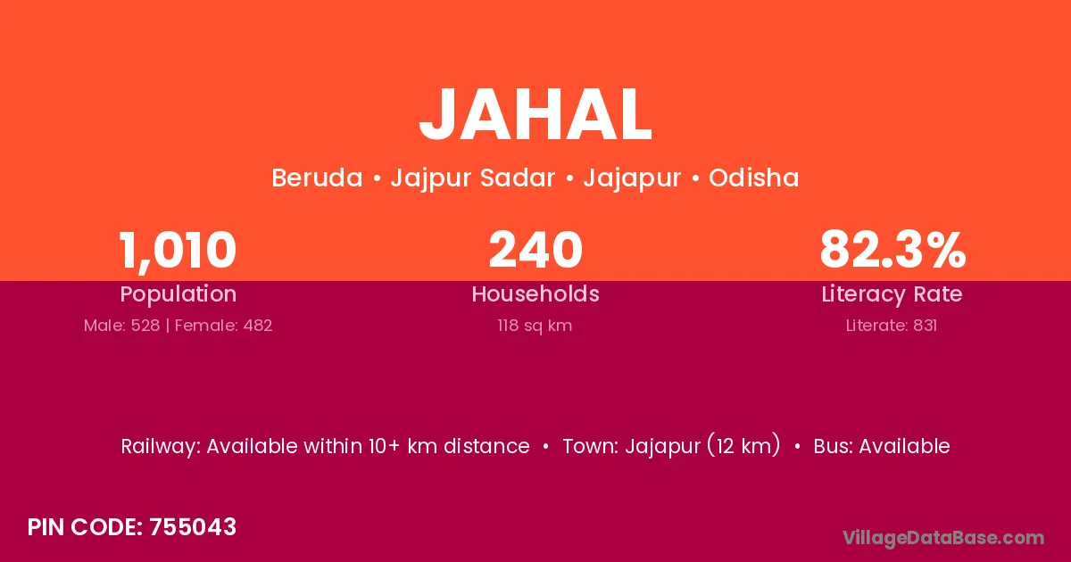 Jajapur (54 km) is the nearest town to Jahal village for major economic activities and is located approximately 54 km away.