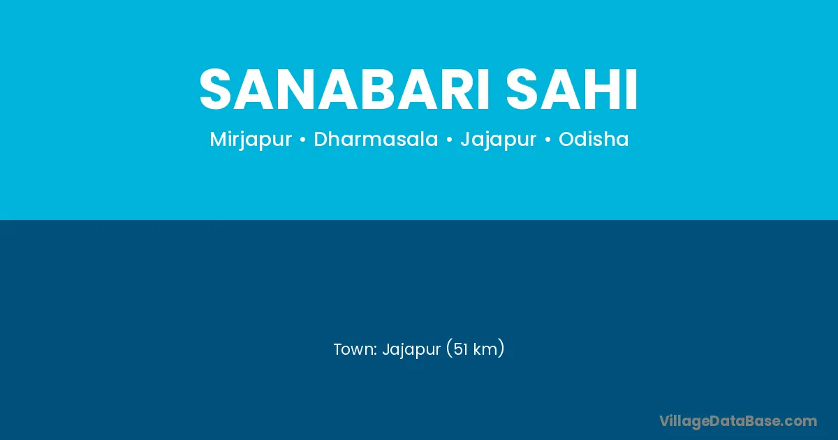 Jajapur (51 km) is the nearest town to Sanabari Sahi village for major economic activities and is located approximately 51 km away.