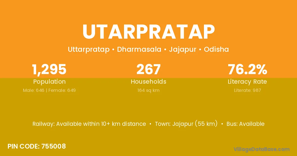 Jajapur (55 km) is the nearest town to Utarpratap village for major economic activities and is located approximately 55 km away.