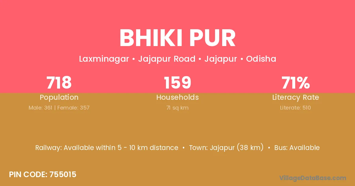 Bhiki Pur village has a total population of 718 people, of which 361 are males and 357 are females.