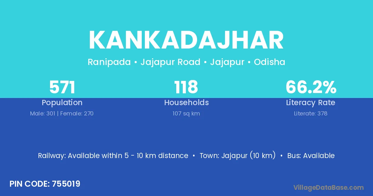 Jajapur (10 km) is the nearest town to Kankadajhar village for major economic activities and is located approximately 10 km away.