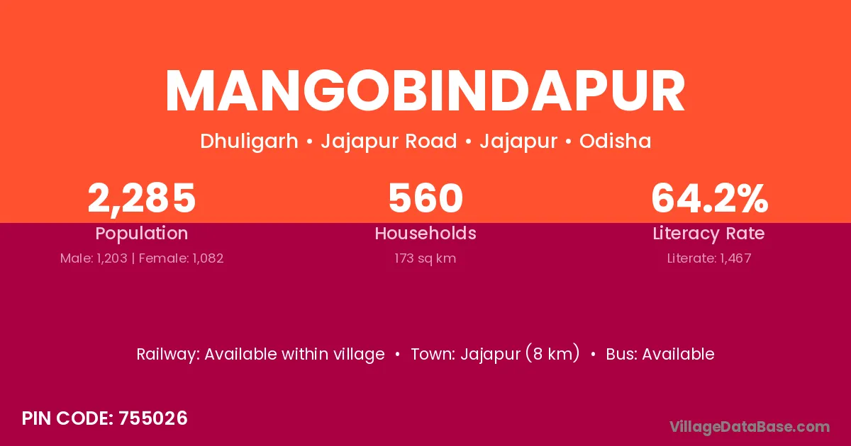 Jajapur (8 km) is the nearest town to Mangobindapur village for major economic activities and is located approximately 8 km away.
