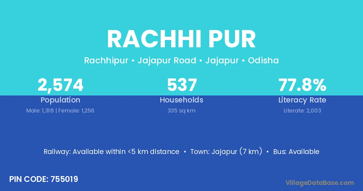Jajapur (7 km) is the nearest town to Rachhi Pur village for major economic activities and is located approximately 7 km away.