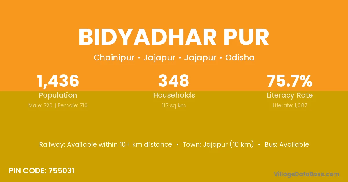 According to Census 2011 information, the village code of Bidyadhar Pur village is 755031.