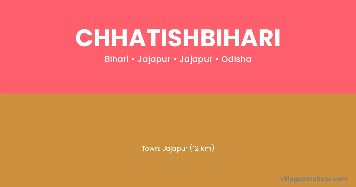 Chhatishbihari village is located in the Jajapur Tehsil of the Jajapur district in Odisha .