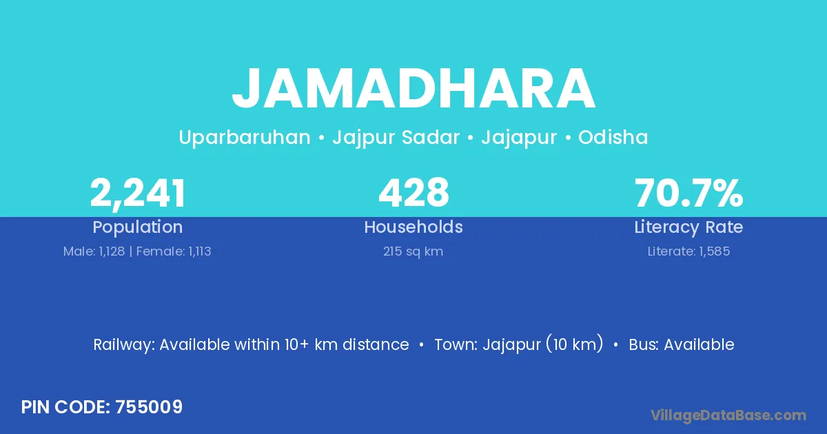 According to Census 2011 information, the village code of Jamadhara village is 755009.