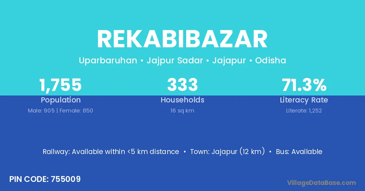 Jajapur (12 km) is the nearest town to Rekabibazar village for major economic activities and is located approximately 12 km away.