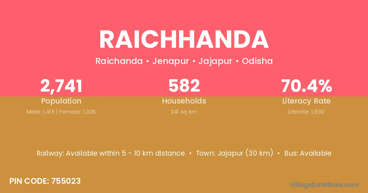 Jajapur (30 km) is the nearest town to Raichhanda village for major economic activities and is located approximately 30 km away.