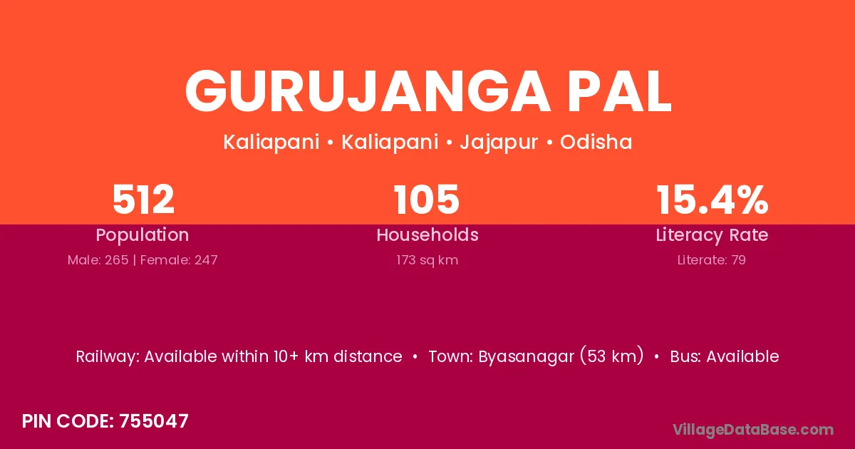 Gurujanga Pal village has a total population of 512 people, of which 265 are males and 247 are females.