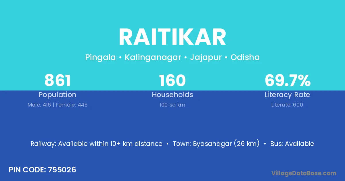 Byasanagar (26 km) is the nearest town to Raitikar village for major economic activities and is located approximately 26 km away.