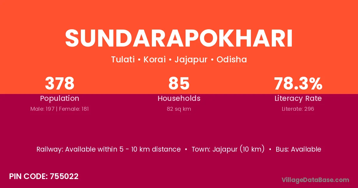 Sundarapokhari village is located in the Korai Tehsil of the Jajapur district in Odisha .
