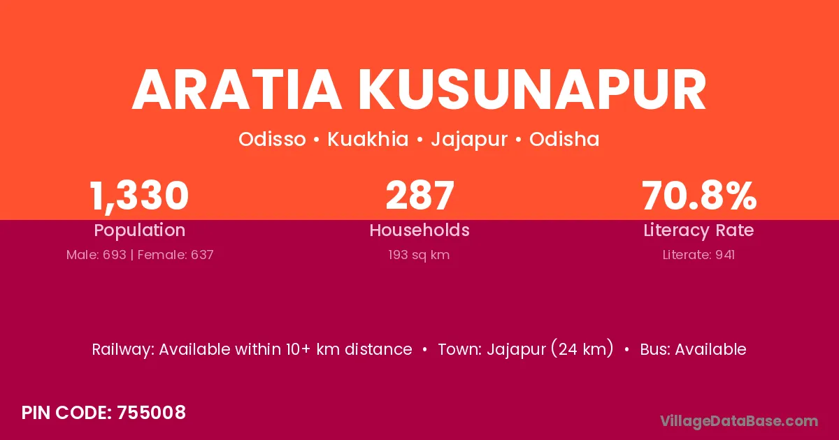 Aratia Kusunapur village is located in the Kuakhia Tehsil of the Jajapur district in Odisha .